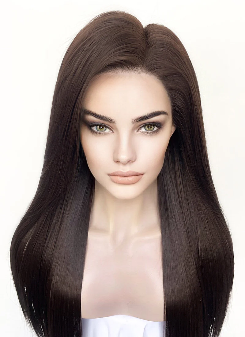 Brunette Straight 13" x 6" Lace Top Kanekalon Synthetic Hair Wig LFS027